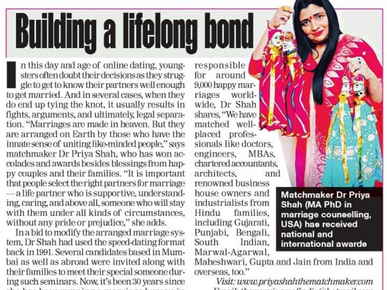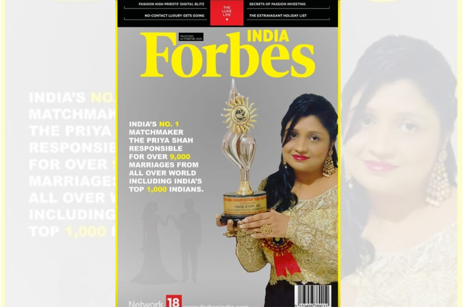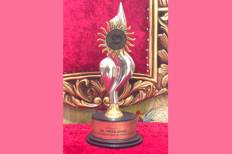 Dr. Priya Shah, the Matchmaker, received the "Most Powerful Top 20 Women in India" Award from the Government of India. The award was presented by Smt. Smriti Irani, Union Minister.