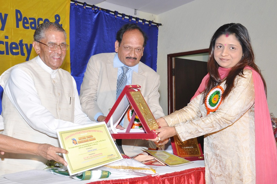 PRIYADARSHINI INDIRA GANDHI Award 2013 For her outstanding services to the society in the chosen field of Matrimony by International Integrity Peace & Friendship Society