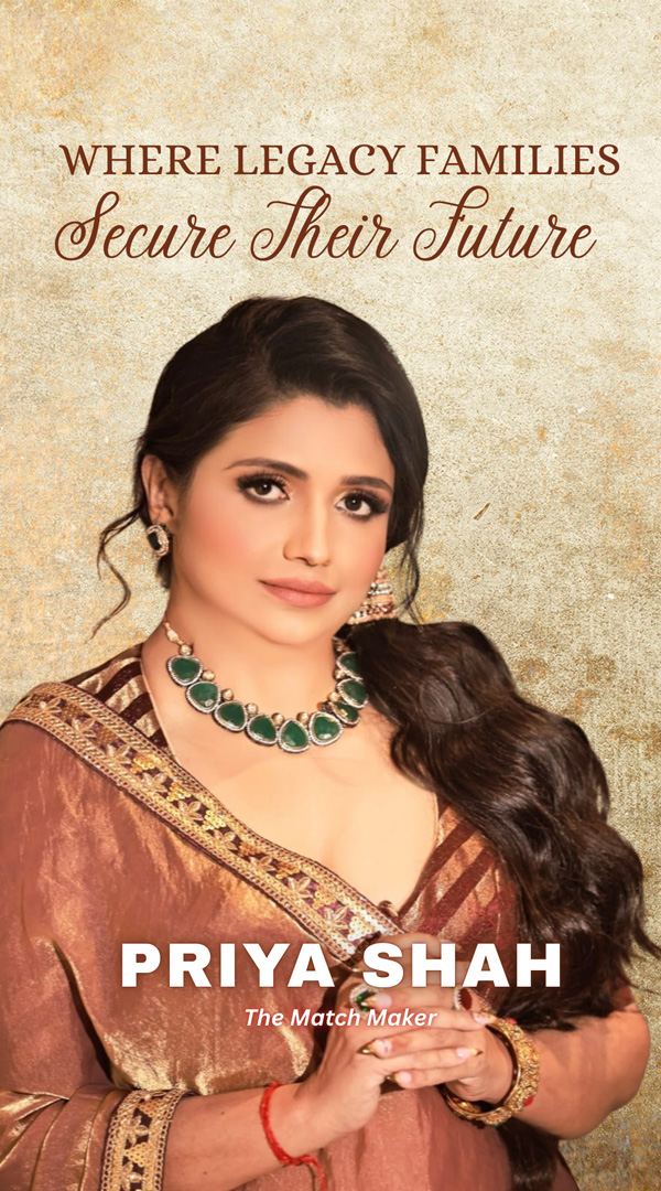 Priya Shah – The Matchmaker – World’s No. 1 Matchmaker & India’s Top Arranged & Love Marriage Expert | The Match Maker Since 1991 – A Personalized Match Making Service by Priya Shah Only | Your Love Story Begins with AI Intelligence & Priya Shah's Experience. | World’s No. 1 AI Matchmaking Experience for HNI & Luxury Clients.